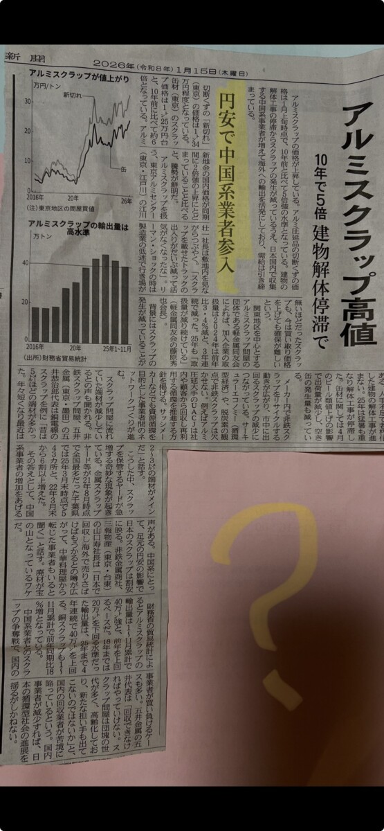※コメントは「日本で(アルミスクラップを)回収し、海外で売りさばけばもうかるとの噂