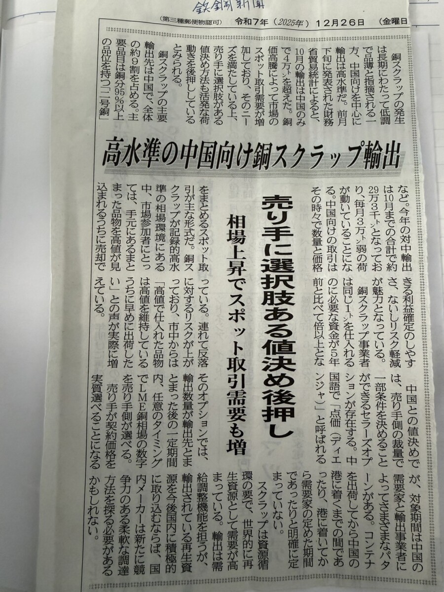 〈2025/12/25 鉄鋼新聞〉