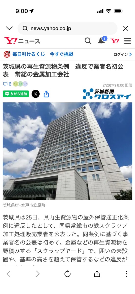 茨城県の再生資源物条例 違反で業者名初公表